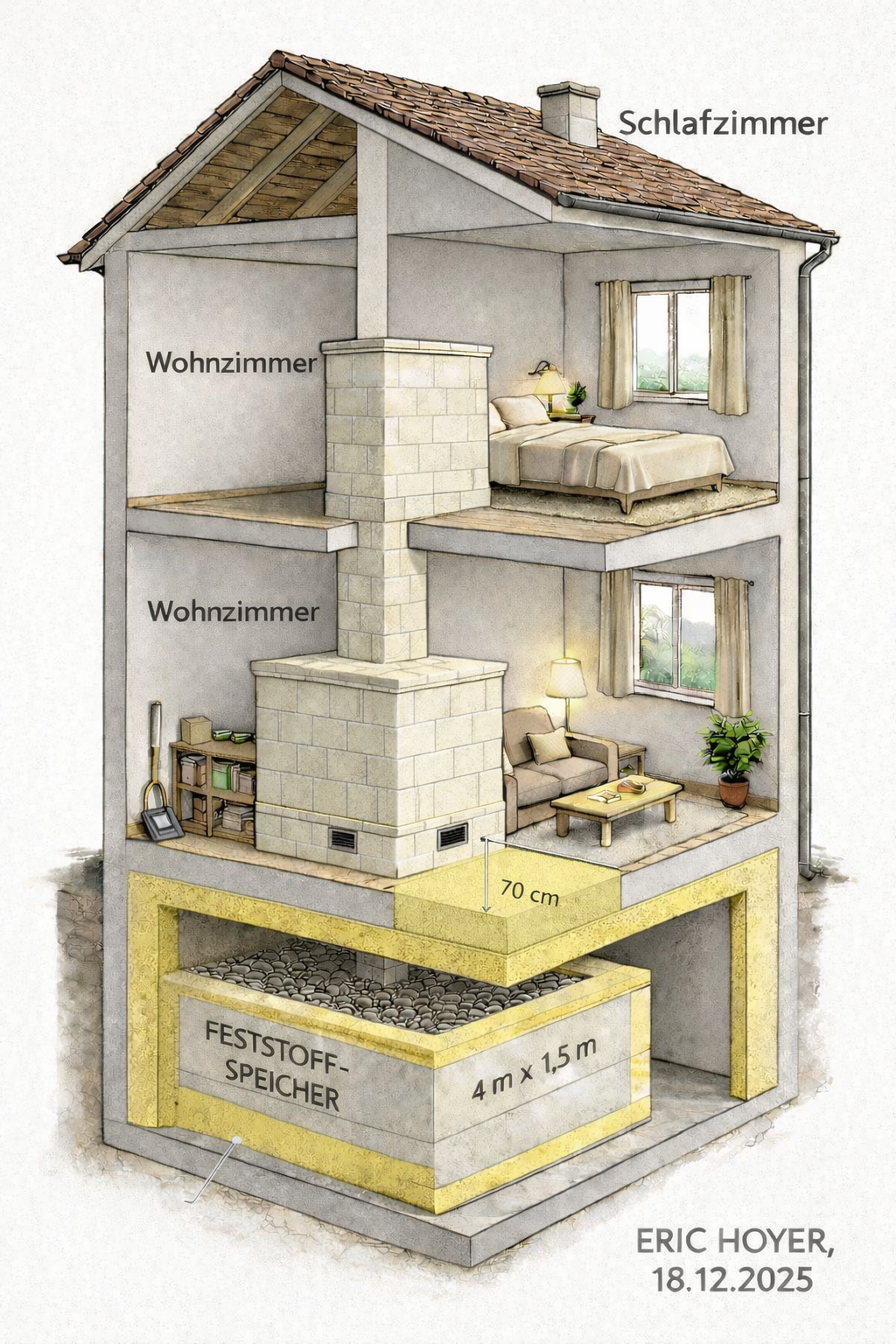 kleinen isolierten Schacht, der mit dem Feststoffspeicher-Hoyer (in diesem Schacht